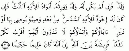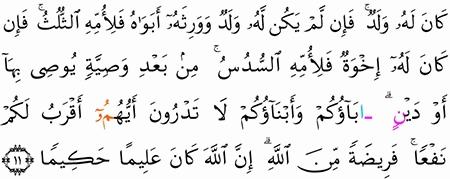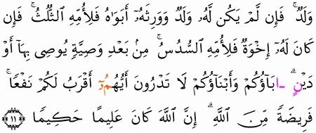 الآية رقم {11} من سورة ( النساء)