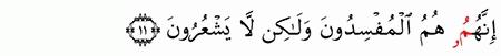 الآية رقم {12} من سورة ( البقرة)