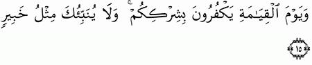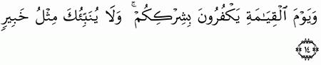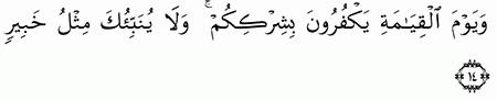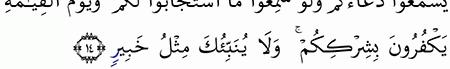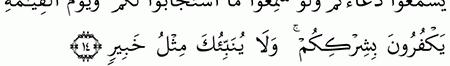 الآية رقم {14} من سورة ( فاطر)