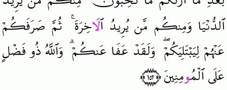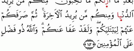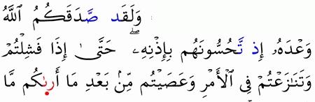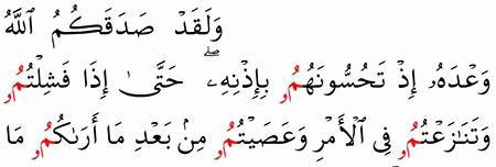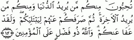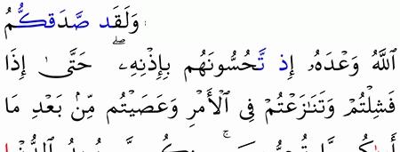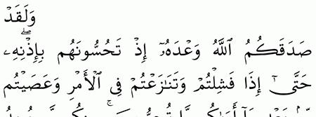 الآية رقم {152} من سورة ( آل عمران)