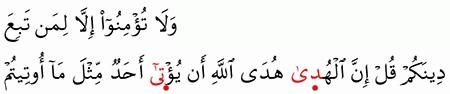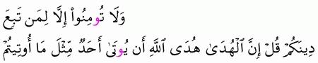 الآية رقم {73} من سورة ( آل عمران)