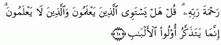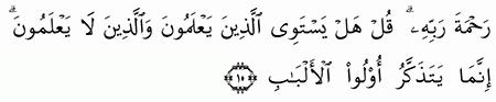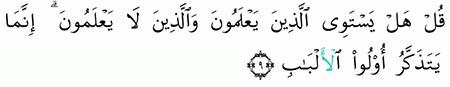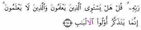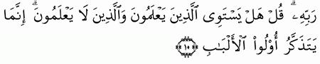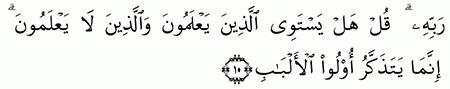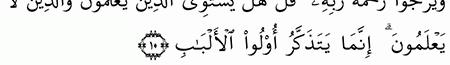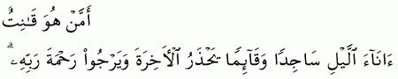 الآية رقم {9} من سورة ( الزمر)