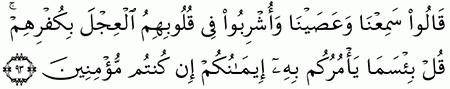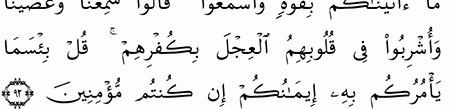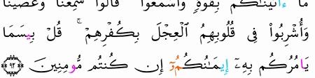الآية رقم {93} من سورة ( البقرة)